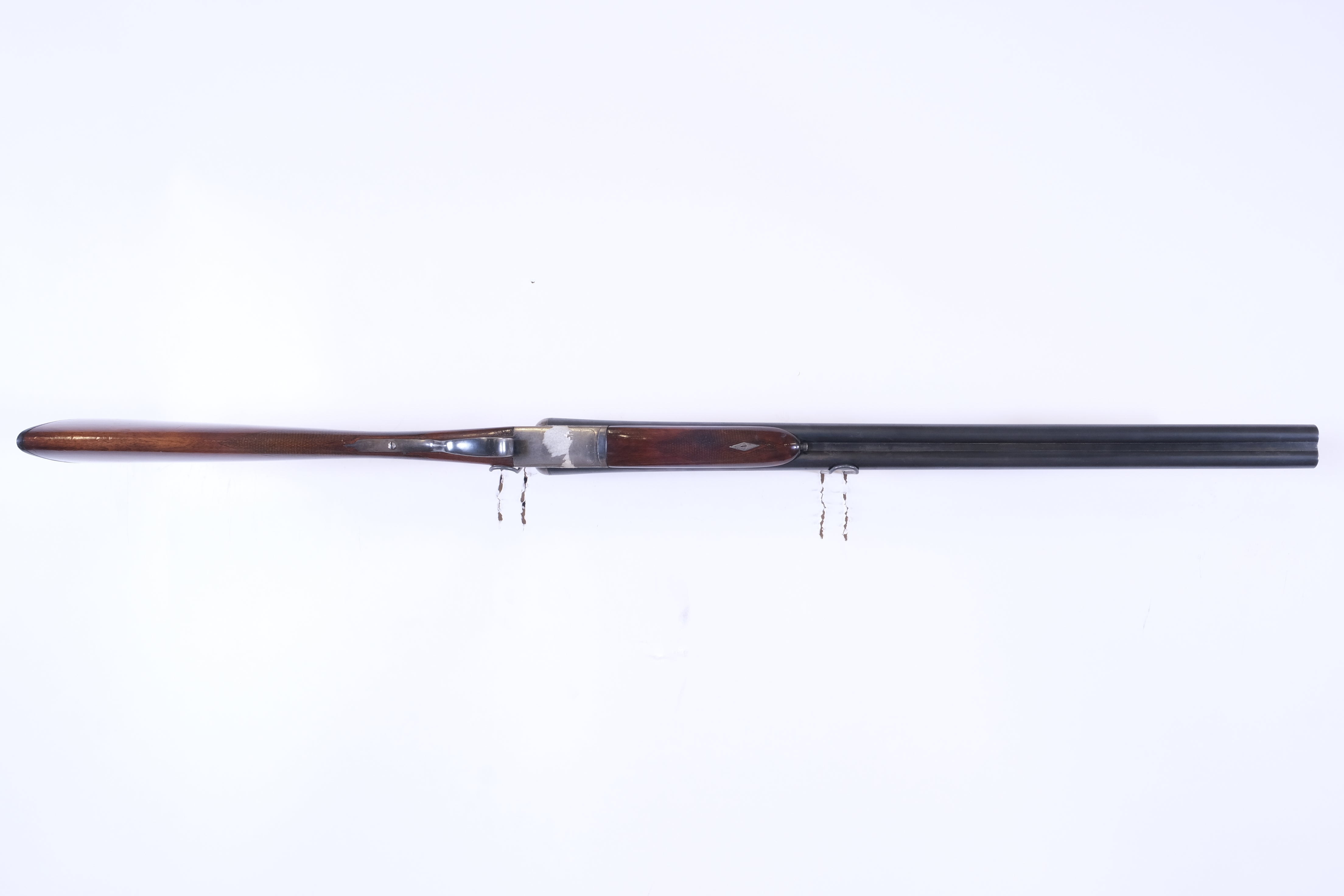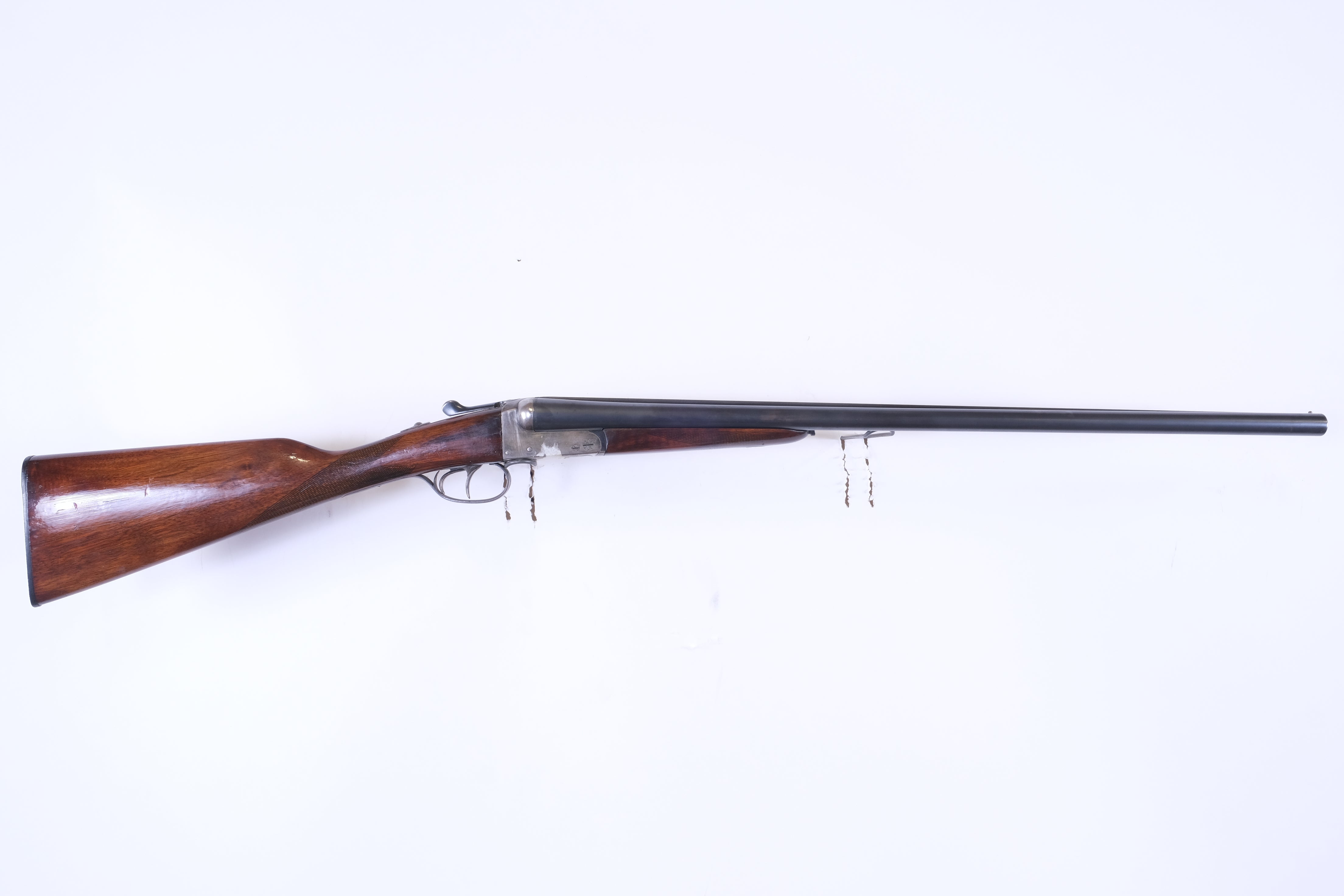 - Good to very good bores, has a minor dent in the left barrel